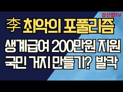 李 최악의 포풀리즘/ 생계급여 200만원 지원/국민 거지 만들기? 발칵