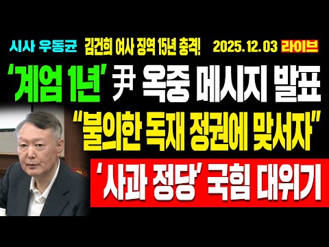 815뉴스] ‘계엄 1년’ 윤석열 옥중 메시지 발표! "불의한 독재 정권에 맞서자" 격려! 김건희 여사 징역…