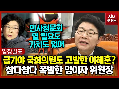 급기야 국회의원도 고발한 이혜훈?...참다참다 폭발한 임이자 재경위원장