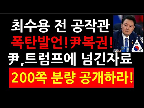최수용 전 공작관 폭탄발언! 尹복권 된다! 尹,트럼프 대통령에 넘긴 200쪽 분량자료 공개하라!