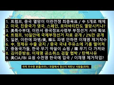 트럼프,中 멸망 원해/美특수부대,이란에서 부정선거 서버확보/트럼프,10일안에 외국개입 부정선거 증거공개/김어준방송,이재명 탄핵…