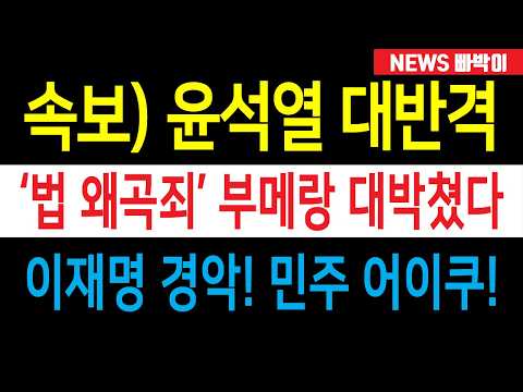 속보) 윤석열 '으라차차' 대반격, '법 왜곡죄' 되빠구 대박쳤다! '내란몰이 판검사 징역 10년' 이재명·민주 지금 난리났다…
