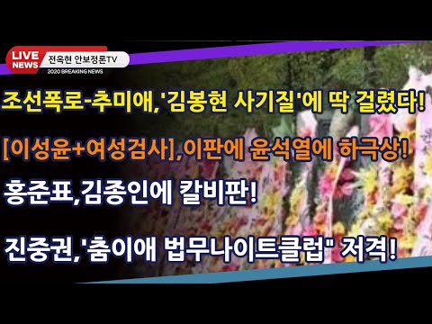 속보48)조선폭로-추미애,'김봉현 사기질'에 딱 걸렸다![이성윤+여성검사],이판에 윤석열에 하극상!!홍준표,김종인에 칼비판!!…