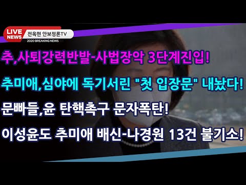 긴급19)추,사퇴강력반발-사법장악 3단계진입!!추미애,이 심야에 독기서린 "첫 입장문" 내놨다!문빠들,윤 탄… 디케DIKE 전옥현 0 761 2020.12.28 11:46 https://youtu.be/s7A4OwxYTmM + 13 https://youtu.be/EIRxzjb8S4o + 21 속보18)물귀신작전 추,문재인과 전면전돌입!TV조선특종,노영민 후임에 그립센 양정철 급부상-윤석열 잡는다!KBS흑백방송개입 탁현민,방송법위반 고발!이판에 강경화 주식 수억수익!