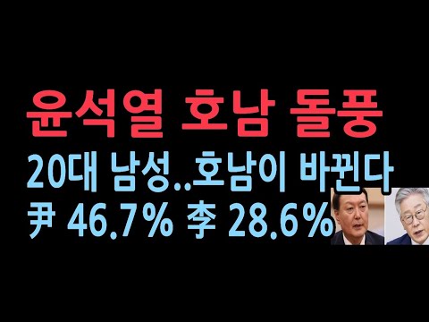 호남서 윤석열이 47% 찍다니…'이대남' 바람 타고 돌풍. 전체 지지율도 역대 보수 후보중 가장 높다.