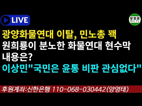 광양화물연대 이탈, 민노총 꽥/원희룡이 분노한 화물연대 현수막 내용은?/이상민"국민은 윤통 비판 관심없다"/…