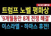 '속보) 트럼프 '노벨 평화상' 유력, '이스라엘-하마스 전쟁' 2년만에 종식! 노벨 위원회 결단만 남았다!…
