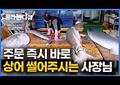 '눈 앞의 상어 해체에 사람들은 바글바글. 희귀 어종만 취급하는 어시장에 갔더니|제사용 돔배기|돛새치|한국기…