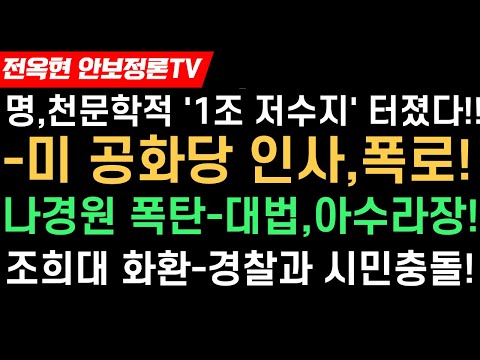 '파문-이재명 1조 저수지의혹 터졌다-한미일보,미공화당 유진철 긴급인터뷰!나경원 폭탄발언-대법,아수라장!조희대 화환쇄도-시민들…
