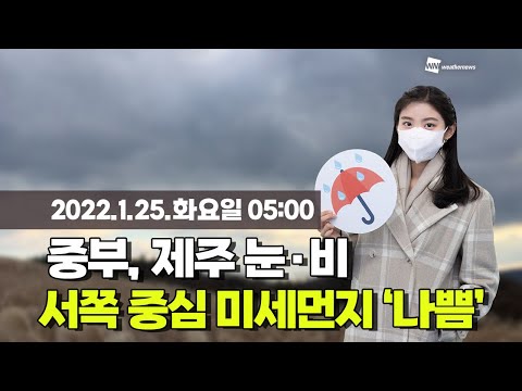 웨더뉴스] 오늘의 날씨 (1월 25일 05시 기준)/ 오늘(화) 중부 곳곳 빗방울, 눈발…포근하지만 먼지↑