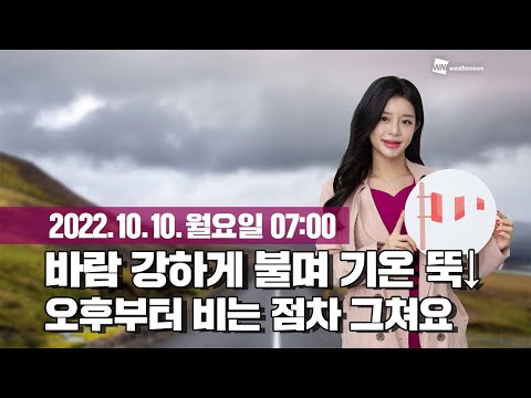 웨더뉴스] 오늘의 날씨 (10월 10일 07시 기준)/ 오늘(월) 강풍, 풍랑 주의…공기 질 ‘좋음’